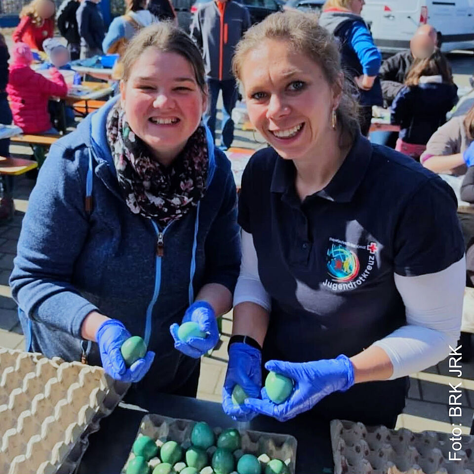 Das JRK Freising färbte am Karfreitag rund 3.000 Ostereier in bunte Farben, bevor diese dann am Folgetag zu Gunsten des BRK auf dem Markt verkauft wurden.